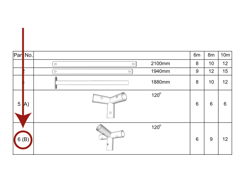 Bei Dancover erhalten Sie immer Ersatzteile für Ihr Partyzelt. Wenn Sie eines oder mehrere Ersatzteile für Ihr Partyzelt von Dancover benötigen, nehmen Sie einfach die beigefügte Anleitung zur Hand oder sehen im Shop nach, um das entsprechende Handbuch im PDF-Format zu finden. Wählen Sie nun die benötigten Ersatzteile sorgfältig aus und achten Sie dabei auf korrekte Länge/Durchmesser/Kanten der Rohre oder Verbindungen.