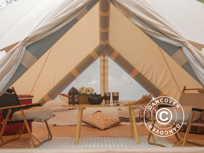 Dancover-Expertentipp: Machen Sie sich immer mit Ihrem Glampingzelt und der Ausrüstung vertraut, bevor Sie damit zum ersten Mal campen gehen. Dann können Sie das Zelt bei Ankunft im Handumdrehen aufbauen.