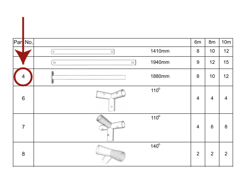 Bei Dancover erhalten Sie immer Ersatzteile für Ihr Partyzelt. Wenn Sie eines oder mehrere Ersatzteile für Ihr Partyzelt von Dancover benötigen, nehmen Sie einfach die beigefügte Anleitung zur Hand oder sehen im Shop nach, um das entsprechende Handbuch im PDF-Format zu finden. Wählen Sie nun die benötigten Ersatzteile sorgfältig aus und achten Sie dabei auf korrekte Länge/Durchmesser/Kanten der Rohre oder Verbindungen.