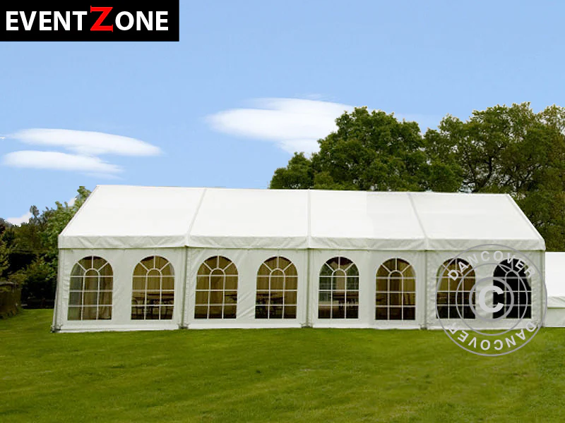 Unsere professionellen Partyzelte EventZone sind in allen Breiten und Längen lieferbar. Die Zelte bestehen aus Modulen und können daher mit weiteren Abteilungen erweitert werden. Firmenname und Logo können auf das einzelne Partyzelt natürlich aufgedruckt werden.