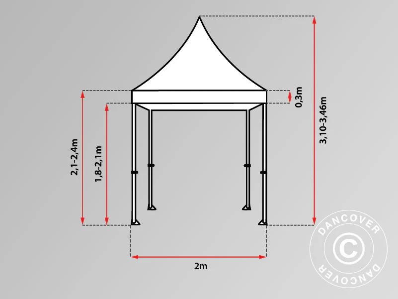Der robuste Aluminiumrahmen ist aus hochleistungsfähigen, sechskantigen Rohren hergestellt und bietet maximale Stabilität und Haltbarkeit. Die großen Fußplatten sorgen beim Aufbau für eine stabile und feste Verankerung. Die Höhe des FleXtents kann in 3 verschiedenen Positionen verstellt werden, auf diese Weise ist eine exakte Anpassung an Ihre Bedürfnisse möglich.