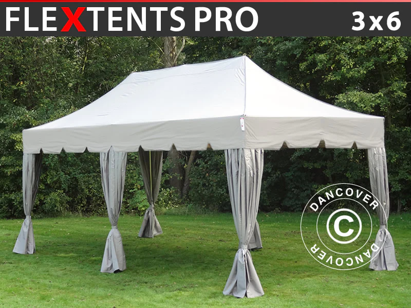 Das Faltzelt FleXtents PRO ist ein qualitativ hochwertiges Faltzelt. Es kombiniert funktionales, elegantes Design mit professioneller Qualität. Das FleXtents PRO kann äußerst einfach aufgebaut, transportiert und in der beigefügten Tasche mit Rädern aufbewahrt werden.
