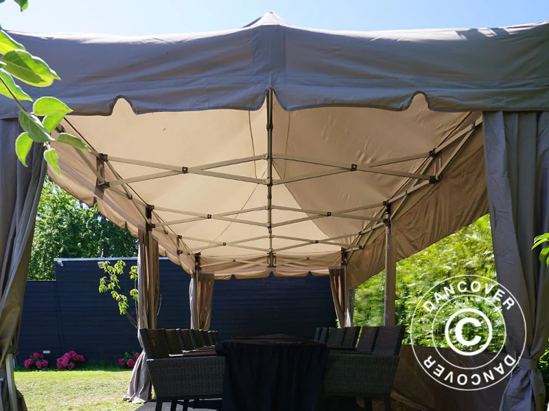Faltzelt FleXtents PRO «Peaked» 3x6m Latte, mit 6 Seitenwänden und 6 dekorative Gardinen