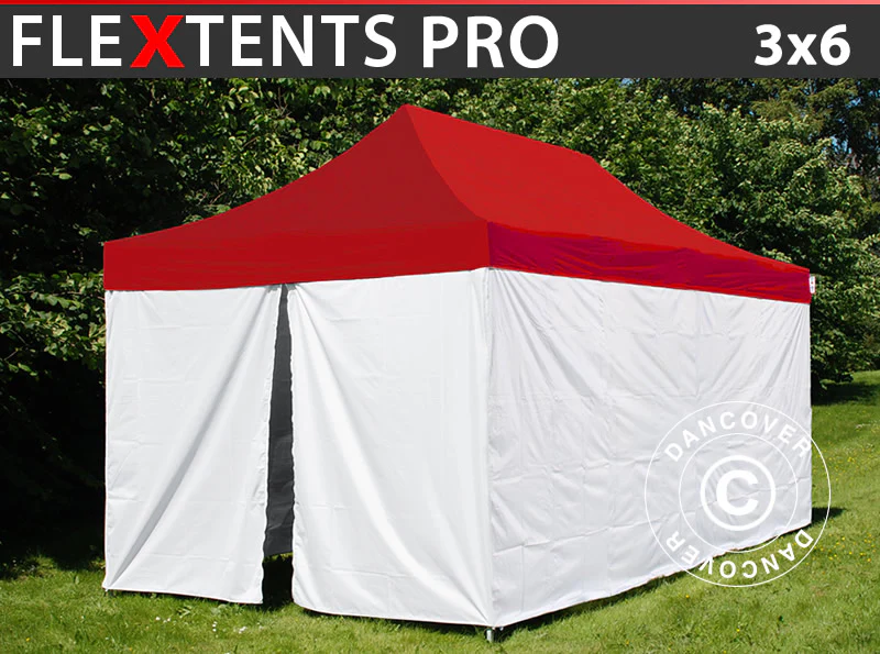 Faltzelt FleXtents® PRO, Sanitäts- & Notfallzelt, 3x6m, rot/weiß, inkl. 6 Seitenwände