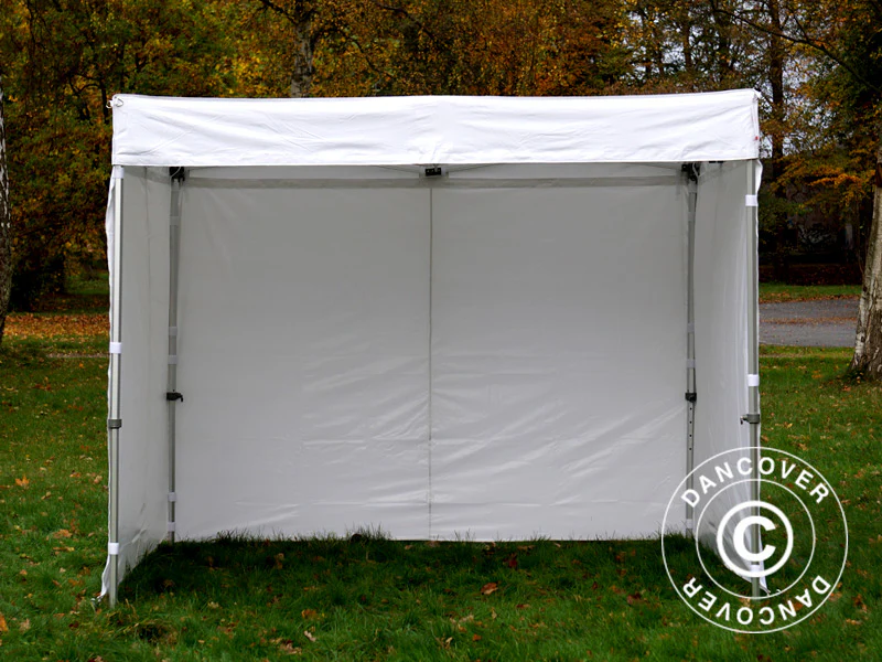 Wir haben dieses einzigartige FleXtents-Faltzelt mit einer abgeflachten Spitze speziell für Ausstellungen und Messen entwickelt, die primär in Innenbereichen stattfinden, aber das Zelt kann bei trockenem Wetter auch im Freien verwendet werden. Das Faltzelt eignet sich perfekt als Stand oder Raum für Ausstellungen von Produkten und mehr. Sie können das Faltzelt mit oder ohne Seitewände verwenden und den Volant bedrucken lassen, um eine positive Aufmerksamkeit und Wiedererkennung zu schaffen.