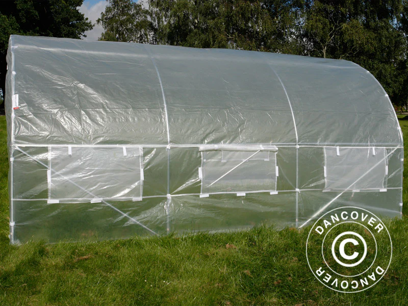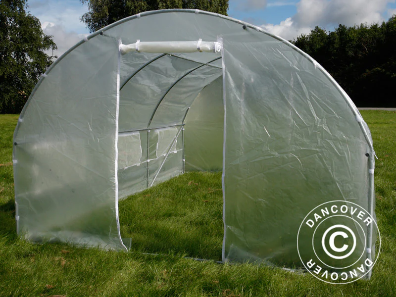 Dancover-Expertenrat: Foliengewächshäuser eignen sich hervorragend, um verschiedene Pflanzenarten anzubauen. Vergessen Sie nicht, die Pflanzen häufig zu bewässern, so oft wie möglich zu lüften und die Früchte regelmäßig zu ernten! Es ist äußerst wichtig, dass die Plane des Foliengewächshauses jederzeit gestreckt und gespannt ist. Andernfalls besteht das Risiko, dass sich das Wasser bei Regen auf dem Dach ansammelt und das Gewächshaus zum Einsturz bringt.