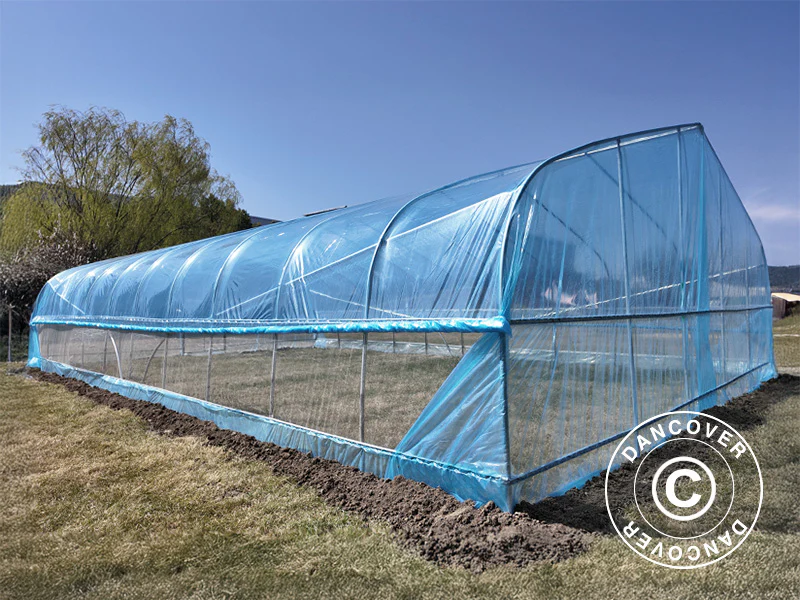 Ein geräumiges Gewächshaus mit einer transparenten, wasserdichten Abdeckung und einem stabilen, verzinkten Stahlrahmen. Dieses große Foliengewächshaus ist perfekt für engagierte Gärtner oder semiprofessionelle Züchter von Beeren, Kräutern, Gemüse und Blumen. Das praktische Gewächshaus ermöglicht den Anbau verschiedenster Pflanzen, ohne in ein teureres Modell aus Aluminium, Glas oder Polycarbonat investieren zu müssen.