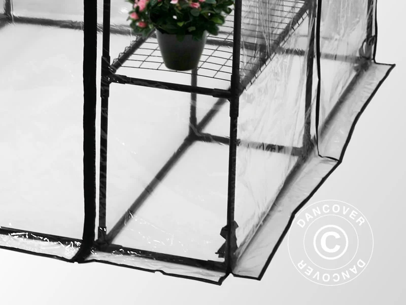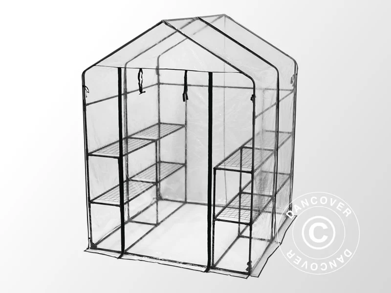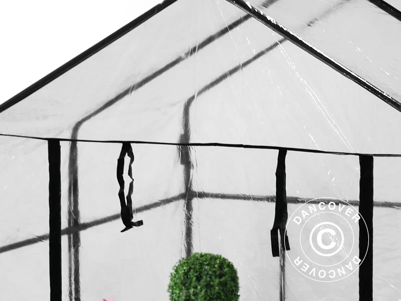 Stabiles Foliengewächshaus aus leichten Materialien wie der langlebigen PVC-Abdeckung und dem Rahmen aus pulverbeschichtetem Stahl. Die 8 Regale bestehen ebenfalls aus pulverbeschichtetem Metall und helfen Ihnen, das Gewächshaus entsprechend zu organisieren. Sie können das Gewächshaus problemlos ohne Werkzeug zusammenbauen. Das Gewächshaus ist ein perfekter Ort für den Anbau aller Arten von Pflanzen vom Frühling bis weit in den Herbst hinein. Das Gewächshaus bietet genau die richtige Umgebung für alle Pflanzen, die einen warmen und geschützten Anbauort benötigen. Alles was Sie brauchen ist ein paar Quadratmeter freie Stellfläche und Sie können anfangen, ihr Gewächshaus in vollen Zügen zu genießen. Bitte stellen Sie sicher, daß Sie das Gewächshaus mit den mitgelieferten Gurten befestigen.