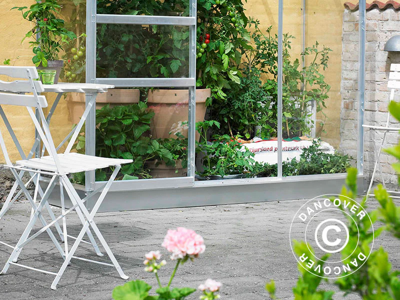 Wir empfehlen ein angepasstes und verzinktes Gewächshaus-Fundament, das eine bessere Stablität verleiht und das Gewächshaus um 12 cm erhöht. In Verbindung mit der ohnehin schon großzügigen Seitenhöhe ermöglicht dies eine noch bessere Nutzung des ganzen Gewächshauses. Die zusätzliche Höhe gibt Ihnen die Möglichkeit, Gurken und andere Gemüsesorten auch an den Seiten des Gewächshauses anzubauen. Zudem haben Sie ein besseres Gefühl für den Raum, wenn Sie das Gewächshaus als Wohnzimmer nutzen und die besondere Atmosphäre genießen möchten, die Ihnen nur ein Gewächshaus bietet.