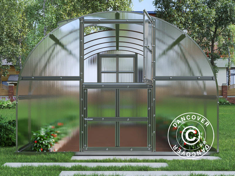 Ein elegantes und robustes Gewächshaus für jeden, der von köstlichen, selbst angebauten Erzeugnissen wie Obst und Gemüse träumt, die eine geschütztere Umgebung erfordern, als sie der offene Garten bieten kann. Die robusten Fensterscheiben aus 4 mm Polycarbonat sind leicht, einfach zu montieren und wesentlich stabiler als herkömmliches Glas, ohne negative Auswirkungen auf die Lichtdurchlässigkeit und damit das Wachstum. Das Gewächshaus passt perfekt in die meisten Gärten und verlängert die Gartensaison beträchtlich. Es ist ein besonderes und wunderschönes Gefühl, ein Gewächshaus zu betreten und Sie werden sich schon bald darauf freuen, hineinzugehen und sich um Ihre Erzeugnisse zu kümmern – oder um ein bisschen Ruhe zu genießen. Dieses robuste Gewächshaus ist insbesondere für Schneegebiete geeignet (siehe Schneelast), kann aber selbstverständlich überall verwendet werden. Es ist möglich, eine oder mehrere Erweiterungen für dieses Gewächshaus zu bestellen!