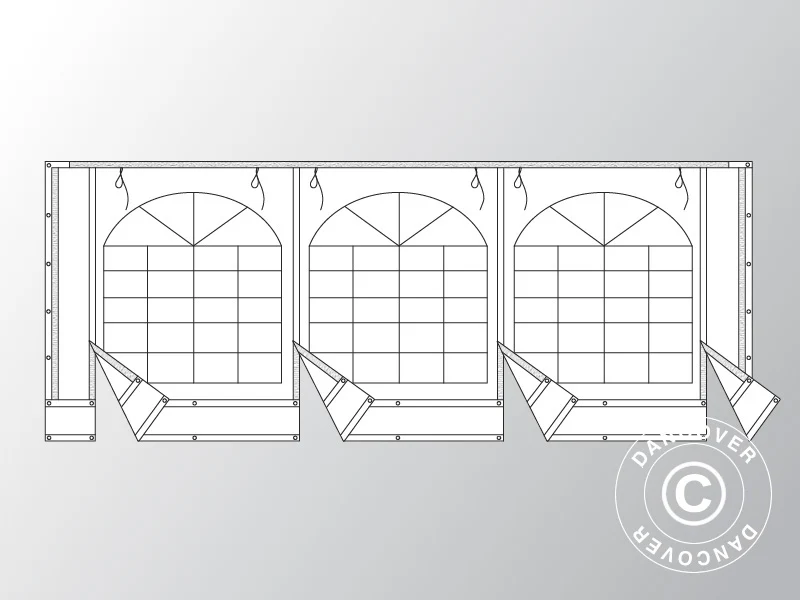 Anm.! Dancover kann nicht garantieren, dass Sie Giebelwand auch für Partyzelte von anderen Anbietern geeignet ist.