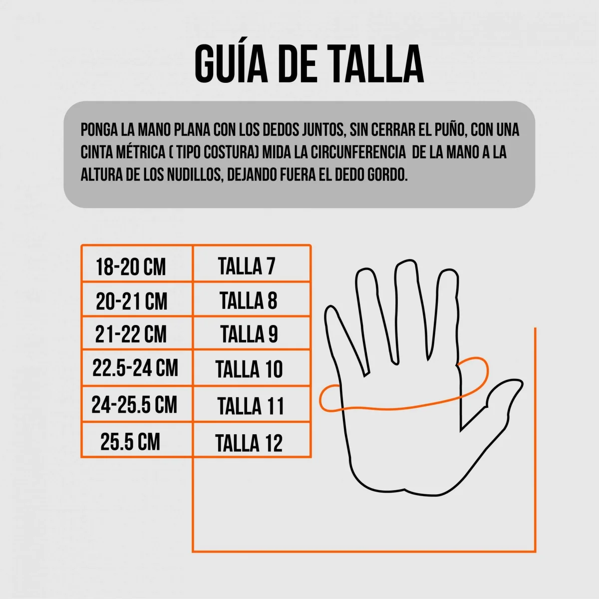 - Muñequera: elástica con ajuste en velcro de 5 cm.