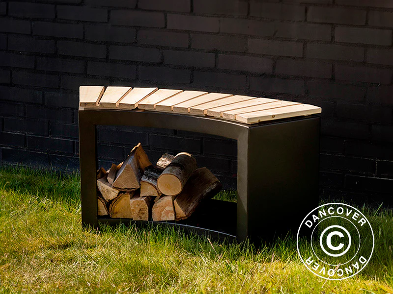 Eine robuste und elegante Stahlbank mit einer Sitzfläche aus FSC-zertifiziertem Kiefernholz und Holzlager. Die elegante Bank ist ideal geeignet, um auf der Terrasse, im Garten oder anderswo im Freien aufgestellt zu werden – am besten in der Nähe Ihrer Feuerschale oder Feuerstelle. Dann haben Sie eine moderne und minimalistische Bank mit Platz für zwei Personen und ein Holzlager, sodass Sie immer frisches und trockenes Brennholz zur Hand haben. Diese Bank kann perfekt mit einem unserer Außenkamine kombiniert werden. Der schöne und natürliche Sitz besteht aus unbehandeltem Kiefernholz. Wir empfehlen daher, ihn mit Holzschutz zu behandeln, um das Holz vor UV-Strahlen, Regen und anderen Einflüssen zu schützen. Verwenden Sie ein neutrales Holzschutzmittel oder wählen Sie eine Farbe, die zu Ihrem Garten passt, damit sich die Bank noch besser einfügt.