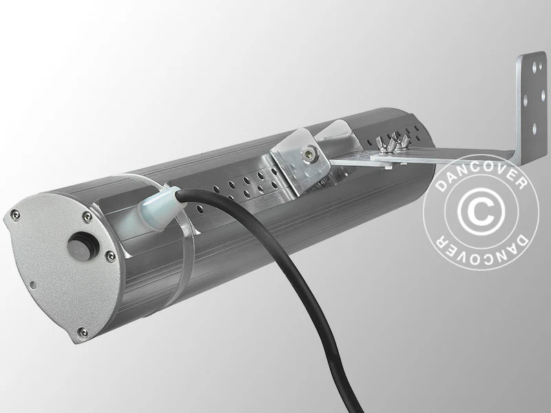 Effizienter Terrassenheizer mit Halogen-Technologie und Fernbedienung für eine kleine Terrasse oder in Kombination mit weiteren Terrassenheizungen als flexible Lösung für einen größeren Bereich geeignet. Die Halogen-Technologie sorgt für eine angenehme Wärme. Der Heizstrahler ist wasserbeständig. Verstellbare Befestigungen für ein Anbringen an der Wand sind inbegriffen. Das Befestigungsmaterial ermöglicht es, den Heizstrahler zu verstellen, um den Effekt der Terrassenheizung zu maximieren.