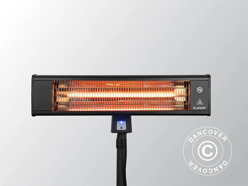 Effizienter Infrarot-Heizstrahler mit Fernbedienung für eine kleine Terrasse oder in Kombination mit weiteren Terrassenheizungen als flexible Lösung für einen größeren Bereich geeignet. Der Infrarot-Heizstrahler sorgt für eine angenehme Wärme mit einem weniger hellen Licht. Der Heizstrahler wird mit Ständer geliefert, wodurch eine optimale Flexibilität gewährleistet ist und keine Werkzeuge für den Aufbau erforderlich sind.