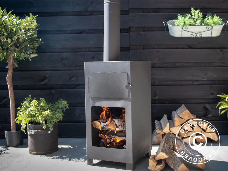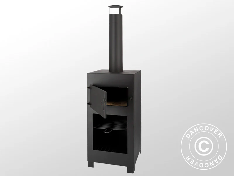Stellen Sie sich vor, Sie servieren Ihren Freunden und Ihrer Familie frisch gebackene Pizza auf der Terrasse. Dieser praktische Pizzaofen und Außenkamin sorgt für eine warme und gemütliche Atmosphäre auf der Terrasse und Sie können gleichzeitig köstliche Pizzen zubereiten. Vergessen Sie Pizzen in feuchten Pappschalen, das ist viel besser! Der praktische Kamin/Pizzaofen ist aus schwarzem Stahl gefertigt und spendet angenehme Wärme, wenn Sie sich abends auf der Terrasse aufhalten möchten. Der Rauch wird durch den Schornstein nach oben abgeleitet und Sie können dabei trotzdem den Duft von brennendem Holz und frisch gebackener Pizza genießen. Anmerkung: Lassen Sie ein offenes Feuer niemals unbeaufsichtigt, auch nicht in einem offenen Kamin!