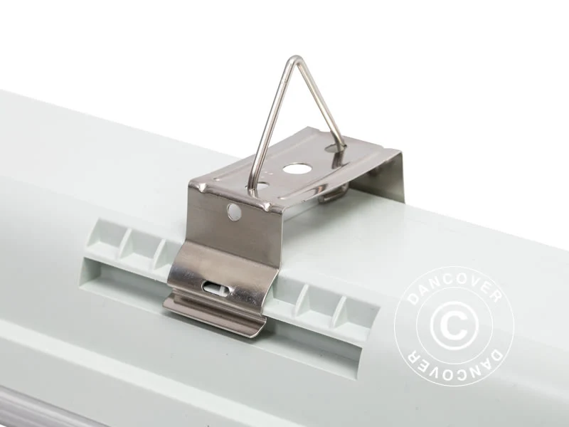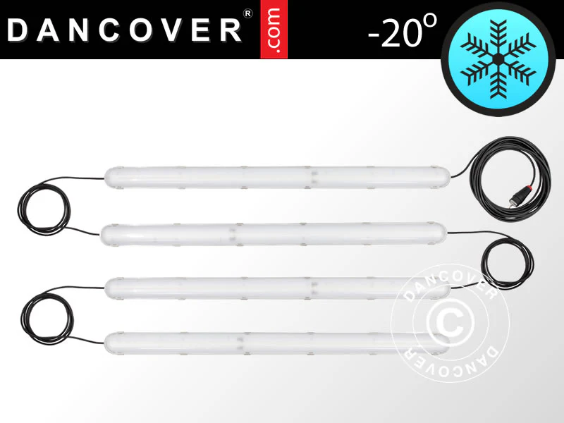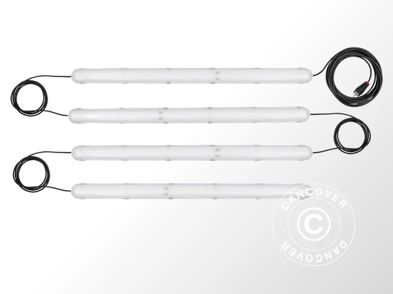 Industrielle LED-Lichtleiste mit angeschlossenen Beleuchtungskörper, perfekt geeignet für Lagerzelte, Zeltgaragen, Werkstätten, Lagerhäuser, Ställe, Besucherzelte, etc. Die Lichtleisten sind leicht anzubringen und können einfach an eine Steckdose angeschlossen werden, damit Ihr Lager, Ihr Lagerzelt, Werkstatt, ect. immer gut beleuchtet wird. Die Beleuchtungskörper sind mit einem 3m langen Kabel verbunden, sodass Sie sie aufhängen und in kürzester Zeit für bessere Lichtverhältnisse in ihrem Zelt oder Lager sorgen. Mit modernen LED-Lichtleisten in Ihrem Lagerzelt oder Lager können Sie sich jederzeit sicherer fortbewegen und leichter finden, wonach Sie suchen. Die hohe Sicherheitsklassifizierung nach IP65 ermöglicht den Einsatz der LED-Lichtleisten fast überall. Die LED-Lichtleisten haben zudem einen sehr niedrigen Energieverbrauch.