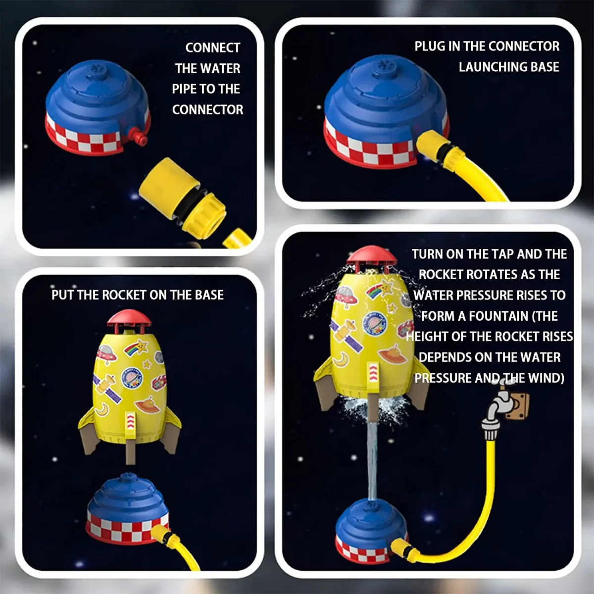 Vive la alegría de la diversión veraniega sin preocupaciones con nuestro Juguete Acuático Rocket Splash. Si no transforma tus momentos de juego al aire libre en una aventura emocionante, devuélvelo dentro de los 14 días para un reembolso completo. Disfruta de tranquilidad mientras tus hijos exploran y aprenden en un entorno seguro y divertido.