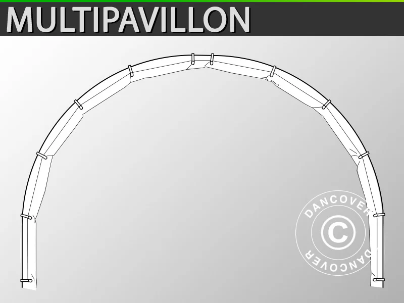 Kuppelzelt Multipavillon® Regenrinne sorgt dafür, dass das Innere des Zeltes schön und trocken bleibt. Alle verwendeten Materialien sind in einer professionellen Qualität und die verschiedenen Elemente können endlos kombiniert werden, indem 2 Zelte miteinander verbunden werden. Die flammhemmende und waschbare Plane schützt vor Sonne, Regen und Wind. Das Kuppelzelt kann sowohl professionell als auch privat genutzt werden und eignet sich perfekt für jede Veranstaltung, von der romantischen Hochzeit oder Konfirmation bis hin zu Ausstellungen, Produkteinführungen, Messen und Märkten. Die wunderschönen Bögen wirken romantisch auf der einen Veranstaltung und schlicht und praktisch auf der anderen, wenn viele Menschen auf Messen etc. durch sie hindurchgehen. Es ist möglich, Seitenwände mit oder ohne Fenster, Regenrinnen, Reißverschlüsse und Extramodule zu kaufen.