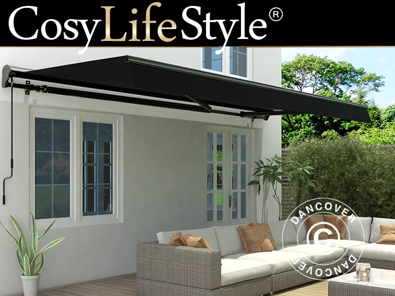 Markise mit Handkurbel, 3,95x3m, Schwarz/Schwarz Rahmen