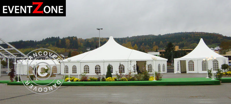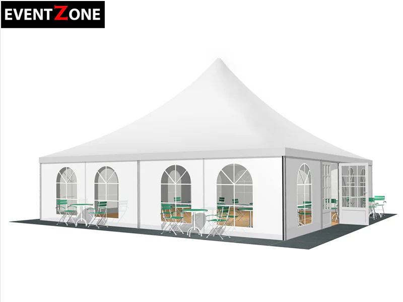 Achtung! Die Bilder zeigen verschiedene Modelle von unseren professionellen EventZone Pagodezelten.