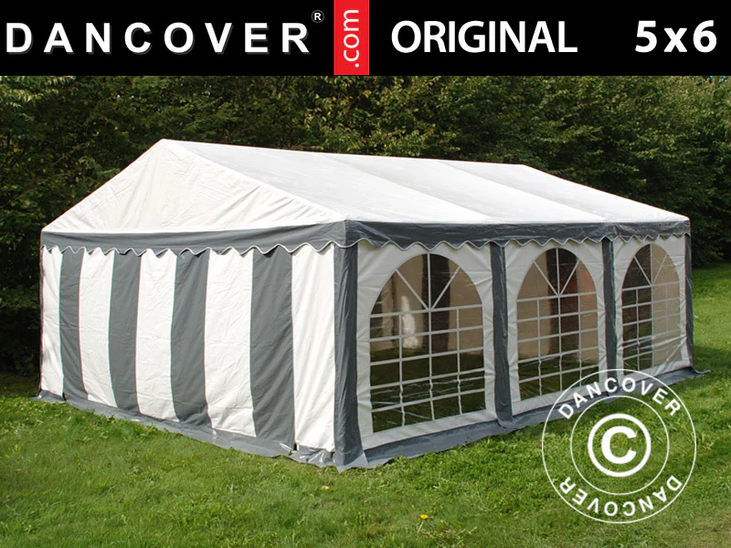Partyzelt Original 5x6m PVC 900, Grau/Weiß