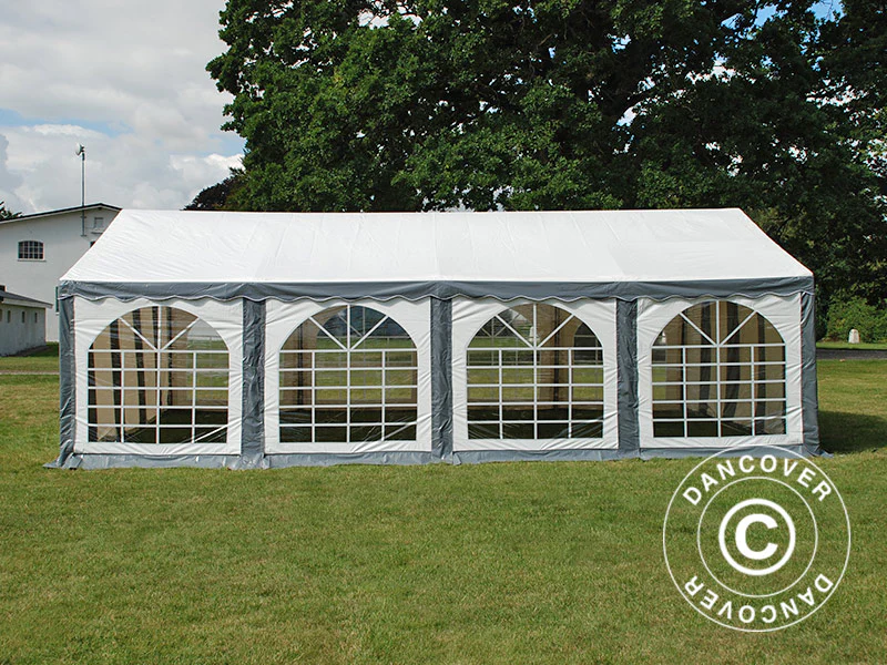 Unsere eleganten und klassischen Partyzelte in der Original-Serie und der bogenförmigen Ausführung (Original Arched) sind aus robuster Qualität und verfügen über eine 100% wasserfeste PVC-Plane mit großen Fenstern im georgianischen Stil an den Seitenwänden. Die schönen, klassischen Fenster sind extra groß und bieten einen fantastischen Lichteinfall. Darüber hinaus ist die bogenförmige Serie mit einem schönen und unverwechselbaren bogenförmigen Volant ausgestattet, der dem Partyzelt einen weichen und gewölbten Look verleiht. Dieses elegante Detail bietet Ihnen in Interaktion mit den großen Fenstern im georgianischen Stil ein exklusives und elegantes Partyzelt, das auf jeder Party, privaten oder professionellen Veranstaltung fantastisch aussieht. Der Rahmen ist aus stabilen verzinkten Stahlrohren hergestellt, die Sie ohne die Verwendung von speziellen Werkzeugen montieren können. Unsere PVC-Partyzelte werden komplett mit Rahmen und Plane sowie mit abnehmbaren Seitenwänden und Giebelwänden ausgeliefert.