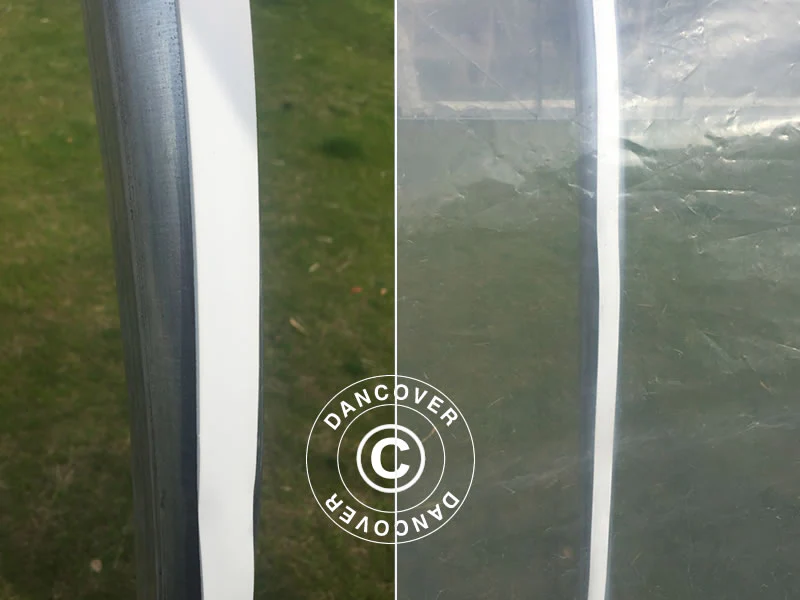 Der Rahmen eines Foliengewächshauses kann bei Sonnenschein ziemlich heiß werden. Aufgrund des heißen Rahmens kann die Plane beschädigt werden. Wenn Sie dieses Schaumstoffband an der Stelle am Rahmen anbringen, an der der Rahmen und die Plane aufeinandertreffen, können Sie diese Art der Beschädigung verhindern und die Lebensdauer Ihrer Plane verlängern. Befestigen Sie beim Zusammenbau des Foliengewächshauses das Klebeband am Rahmen, bevor Sie die Plane anbringen. Wenn Sie die Plane über den Rahmen ziehen, hilft Ihnen das Klebeband außerdem, die Plane an der richtigen Stelle anzubringen, ohne dass die Plane an Verbindungsstücken oder Ähnlichem hängen bleibt und beschädigt wird.