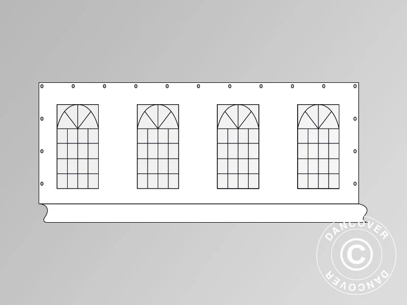 Seitenwand mit Fenster in professioneller Qualität für Ihr Partyzelt. Die Seitenwand verfügt über Ösen und wird genauso befestigt, wie die gewöhnlichen Seitenwände. Wenn Sie mehrere Seitenwände mit Fenstern auswählen, haben Sie einen hohen Lichteinfall im Zelt und einen schönen Ausblick. Dies eignet sich hervorragend in Verbindung mit einem Buffet, einer Bar oder ähnlichem. Vergessen Sie nicht, dass Sie stets unseren Kundenservice kontaktieren können, wenn Sie Fragen bezüglich der Bestellung einer Seitenwand oder anderer Ersatzteile von Dancover haben.
