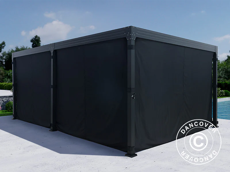 Schaffen Sie einen noch komfortableren und vielseitigeren Außenbereich mit Seitenwänden, Moskitonetz und einem Doppel-Schienen-Zugsystem, das speziell für den bioklimatischen Pergola-Pavillon Monterey entwickelt wurde. Mit dieser Komplettlösung können Sie Ihre Pergola flexibel an wechselnde Wetterbedingungen anpassen und wunderbare Tage im Garten mit mehr Schutz, Privatsphäre und Insektenschutz genießen.