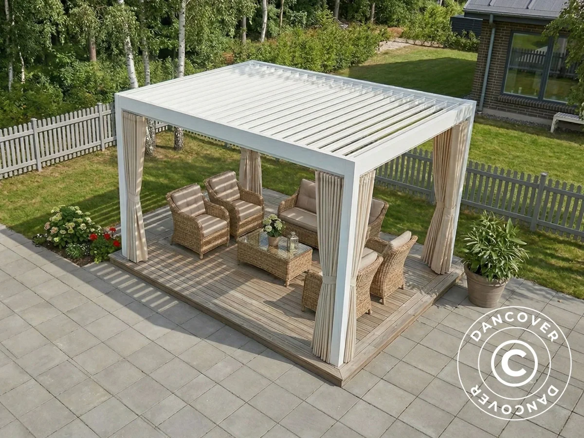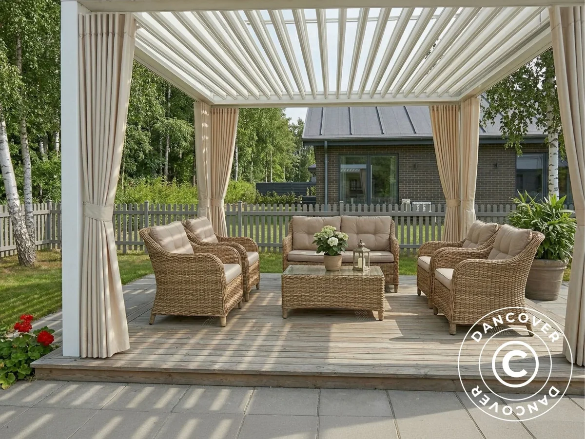 Den Garten zu genießen wird noch angenehmer, wenn Ihre Pergola Pavillon sowohl Komfort als auch Schutz bietet. Ein Garten-Pergola Pavillon mit Vorhängen und Moskitonetz schafft einen gemütlichen, geschützten Außenbereich, in dem Sie sich entspannen, essen oder Zeit mit Familie und Freunden verbringen können – ganz ohne Störungen. Mit den eleganten Vorhängen und dem feinen Moskitonetz genießen Sie Ihren Garten in Ruhe, frei von fliegenden Insekten und neugierigen Blicken aus der Umgebung.