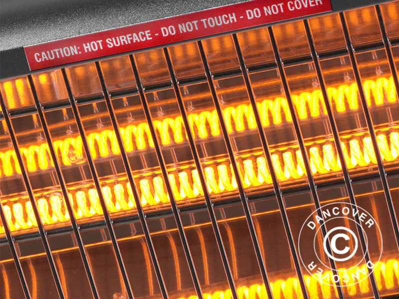 Effizienter Infrarot-Heizstrahler mit Fernbedienung für eine kleine Terrasse oder in Kombination mit weiteren Terrassenheizungen als flexible Lösung für einen größeren Bereich geeignet. Der Infrarot-Heizstrahler sorgt für eine angenehme Wärme. Verstellbare Befestigungen für ein Anbringen an der Wand sind inbegriffen. Das Befestigungsmaterial ermöglicht es, den Heizstrahler zu verstellen, um den Effekt der Heizung zu maximieren.