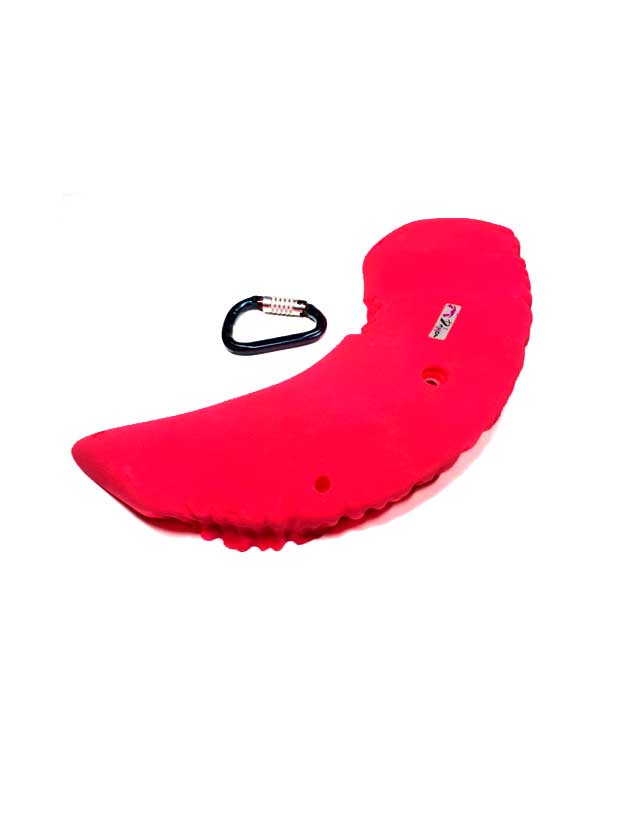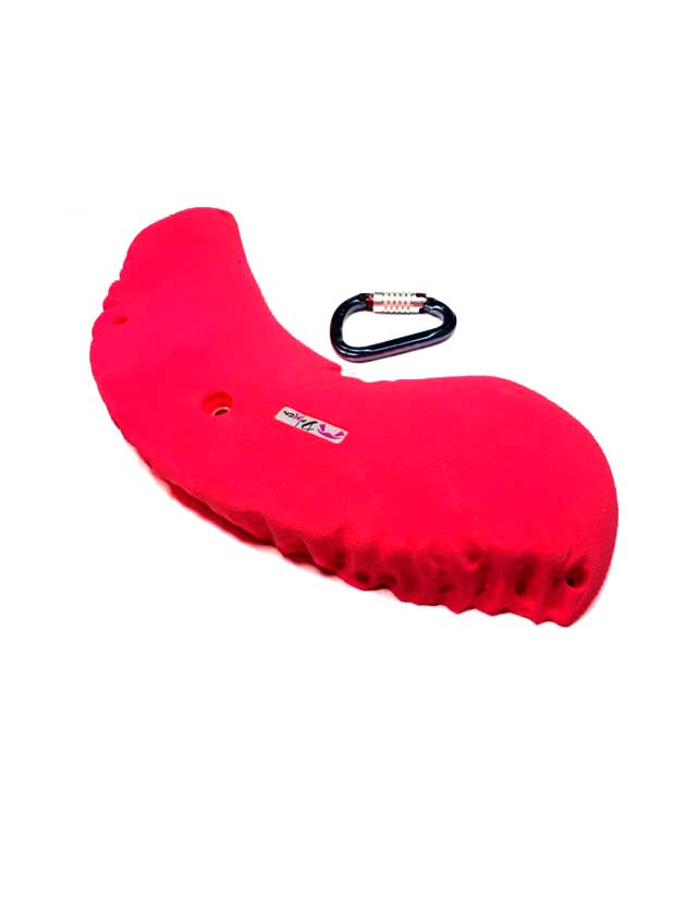 Fabricado en resina de poliuretano, esta presa de gran tamaño, con su agarre plano y romo a medida que va desde mitad hacia los extremos, muy buena para compartir a dos manos y con el talón en pasos de bloque.