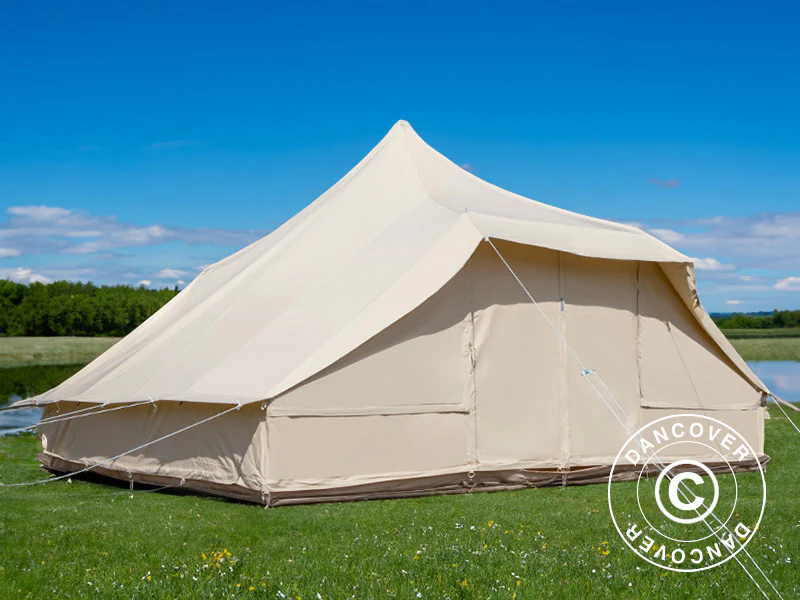 Die Zelte bestehen aus 280 g/m² wasserdichtem Baumwoll-Canvas. Die Bodenplane besteht aus 500 g/m² wasserdichtem PVC mit Ripstop. Der Stoff ist schimmelresistent. Die Zelte verfügen über dreieckige Fenster für viel Licht im Inneren. Bitte beachten Sie die Dachhöhe von 3,00 m, die den Aufenthalt im großen Zelt angenehm macht. Die Zelte werden mit Stangen, Heringen, Abspannleinen und einer Tragetasche geliefert.